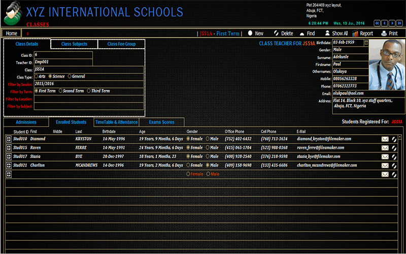 It’s Easy – To – Use “User Inter-phases” allows different units to still operate as different entities without interfering with another's schedule of duty. Ez-School Pro runs on a Server/Client Structure to allow the independence of process and allows for active/real-time Synchronization of data across the school as they are being generated.