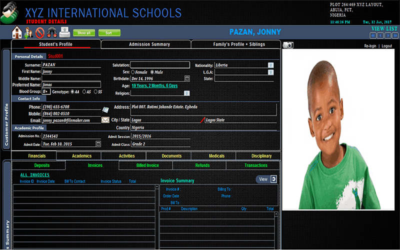 One of the primary modules of Ez-School is the student profile manager which has all information which relates to the student profiled on the students’ page. You would find information ranging from contact information, financial/transaction summary, Academic profile and Assessment, Guardian details, Related Student, Class History, etc.